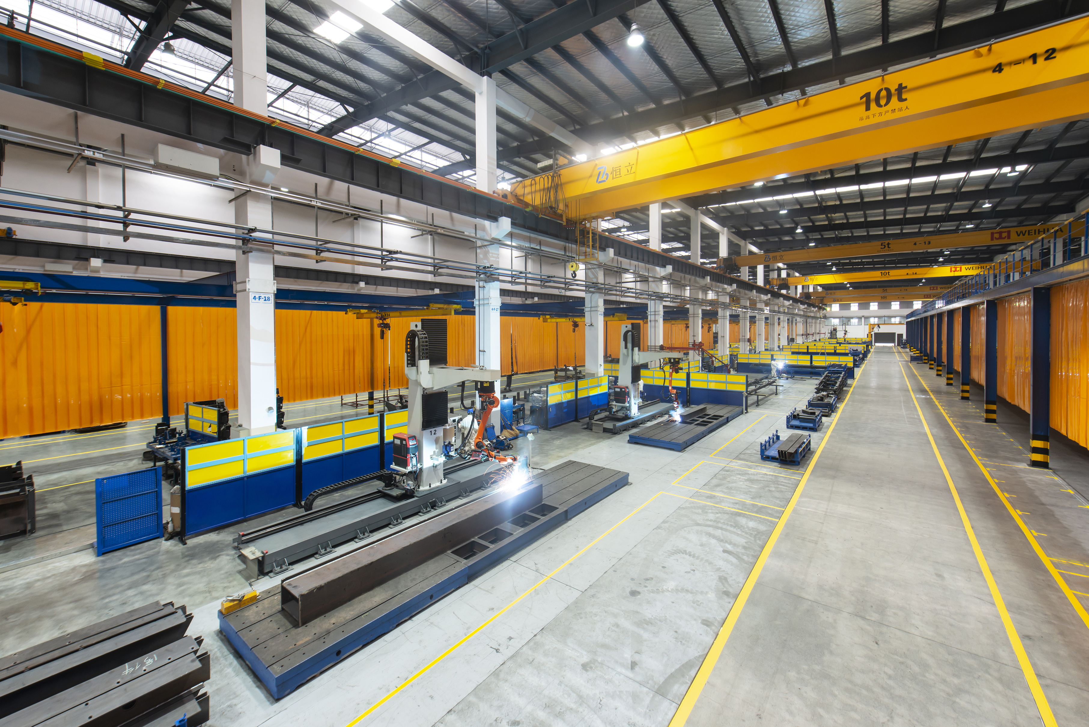 鈑焊車間占地面積為21000平方米,擁有焊接機(jī)器人50臺、二保焊機(jī)130臺,其中擁有8軸焊接機(jī)器人和離線編程焊接機(jī)器人等先進(jìn)焊接設(shè)備。員工約250余人,通過德國萊茵認(rèn)證公司(TUV)的歐標(biāo)(EN287)和美標(biāo)(ASME IX)焊工認(rèn)證。