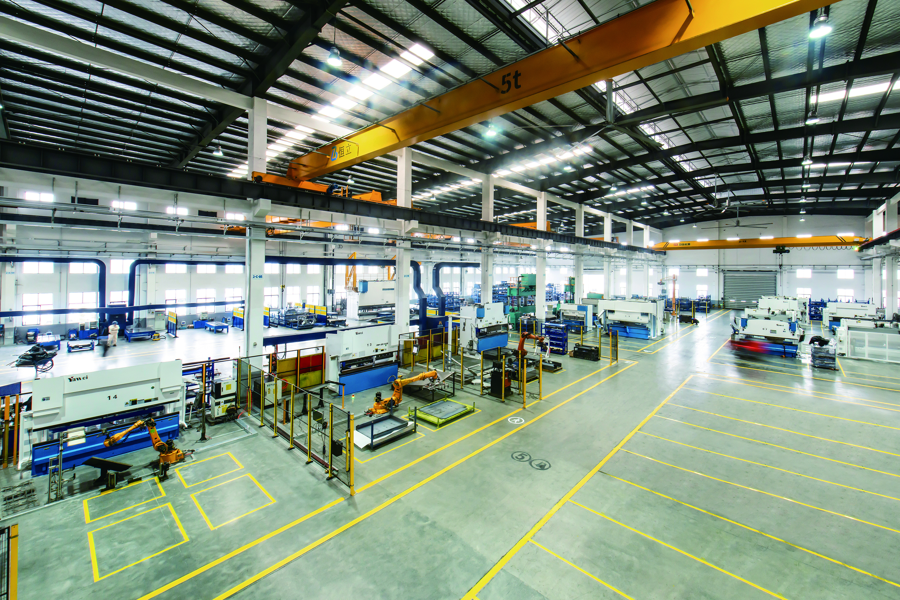 冷作車間占地面積為7500平方米,擁有數(shù)控沖床1臺、折彎機(jī)12臺、數(shù)控折彎機(jī)器人3臺、校平機(jī)4臺、液壓機(jī)11臺,員工約70余人。
